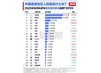 2025香港新车首次登记品牌榜