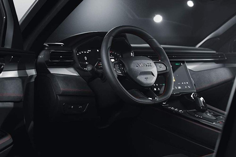 内饰上,领克05大面积采用直线和棱形线条设计,环抱式驾舱设计偏向于主驾驶侧,配备D型三辐式多功能方向盘,首次加入了手势触控板,电子挡杆和运动换挡拨片为全新设计。其采用贯穿式隐藏出风口设计,中控屏两侧使用进口真铝装饰板,搭配镭射花纹工艺以及由Nappa真皮和Nubuck翻毛皮混搭而成的桶形座椅。