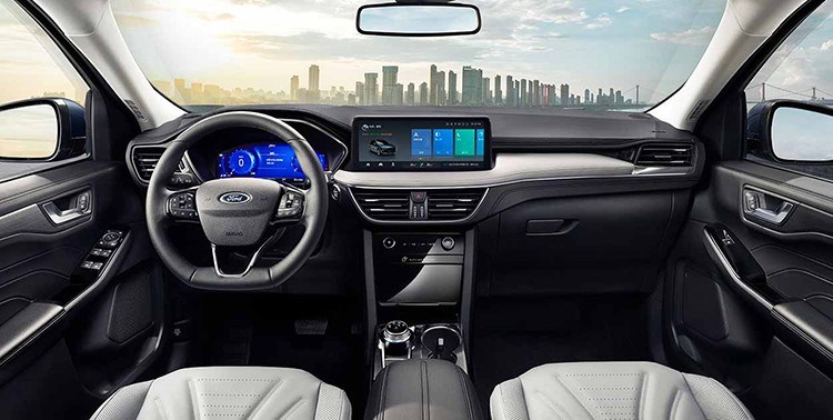 内饰方面,锐际也和海外版Kuga保持了较高的相似度,区别在于拥有更大的中控屏,并在前排空调出风口和空调控制区进行了一些调整,新车采用家族最新的设计风格,中控台整体造型与福克斯Active比较类似,包含12.3英寸悬浮式中控大屏、旋钮式换挡和空调出风口等位置,全黑色内饰搭配红色缝线进行装饰,符合年轻消费者的审美。