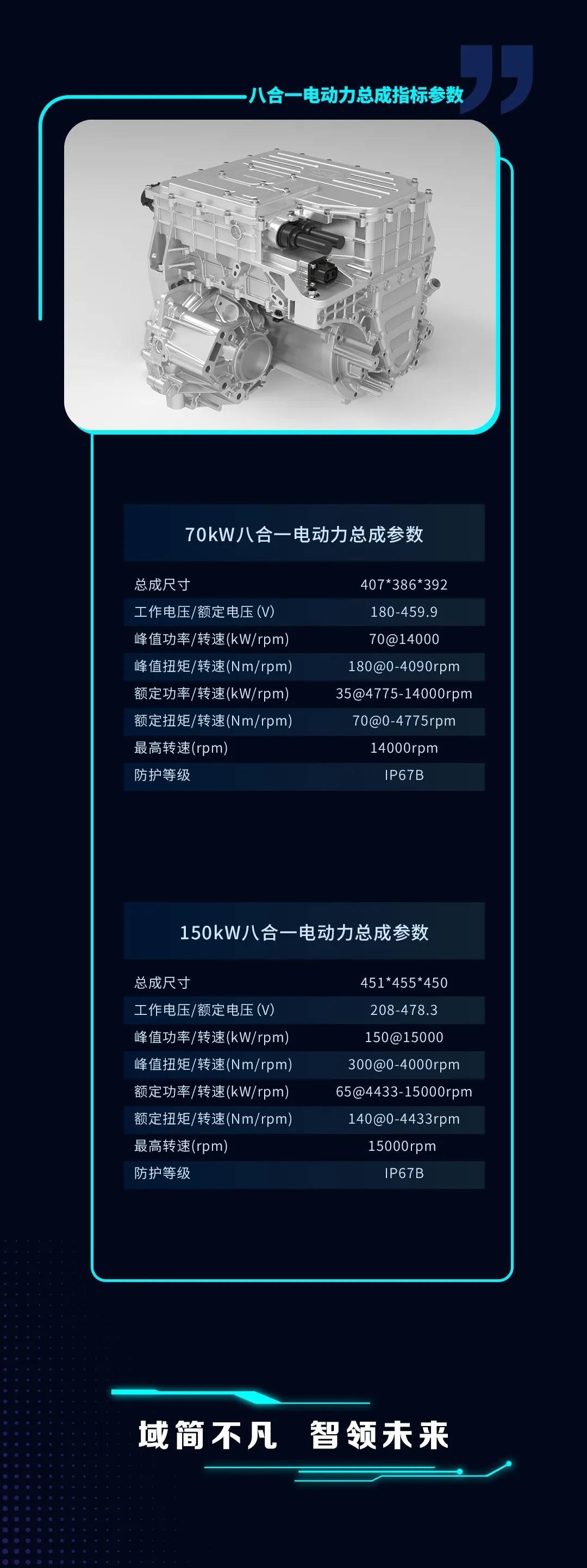 资料显示,该系统实现外部高压滤波器共用、外部接口滤波电路共用、高压采样共用等多部件共用,系统DC、OBC深度集成、配电深度集成、变压器和电感集成、VCU/BMC/MCU芯片集成,可节省一路H桥和变压器、节省大量高压线束、磁模块体积缩小40%,整体体积降低16%,重量降低10%,满足前驱、后驱和四驱架构,助力整车布置。