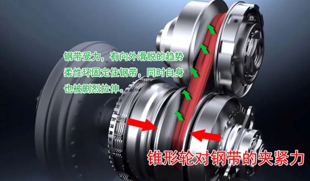 CVT变速箱最怕以下两种情况:1.长期承受大扭矩,2.突然的传动冲击。为什么长期承受大扭矩会导致CVT变速箱故障率增加,很多人可能觉得CVT的钢带和自行车链条一样,是靠拉力传递动力的。其实并不完全是这样的。