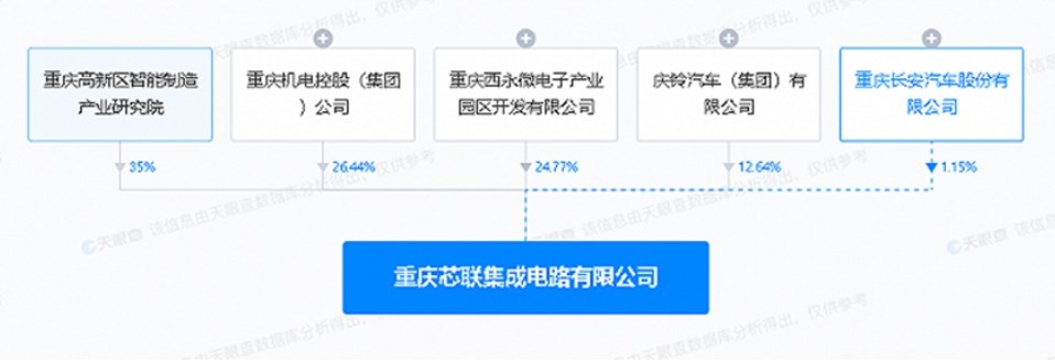 股东信息显示,该公司由重庆高新区智能制造产业研究院、重庆机电控股(集团)公司、庆铃汽车(集团)有限公司、长安汽车等共同持股。据悉,重庆芯联集成电路有限公司是重庆市国资相关单位联合大型汽车整车企业投资的先进车规级12英寸大型集成电路制造项目。