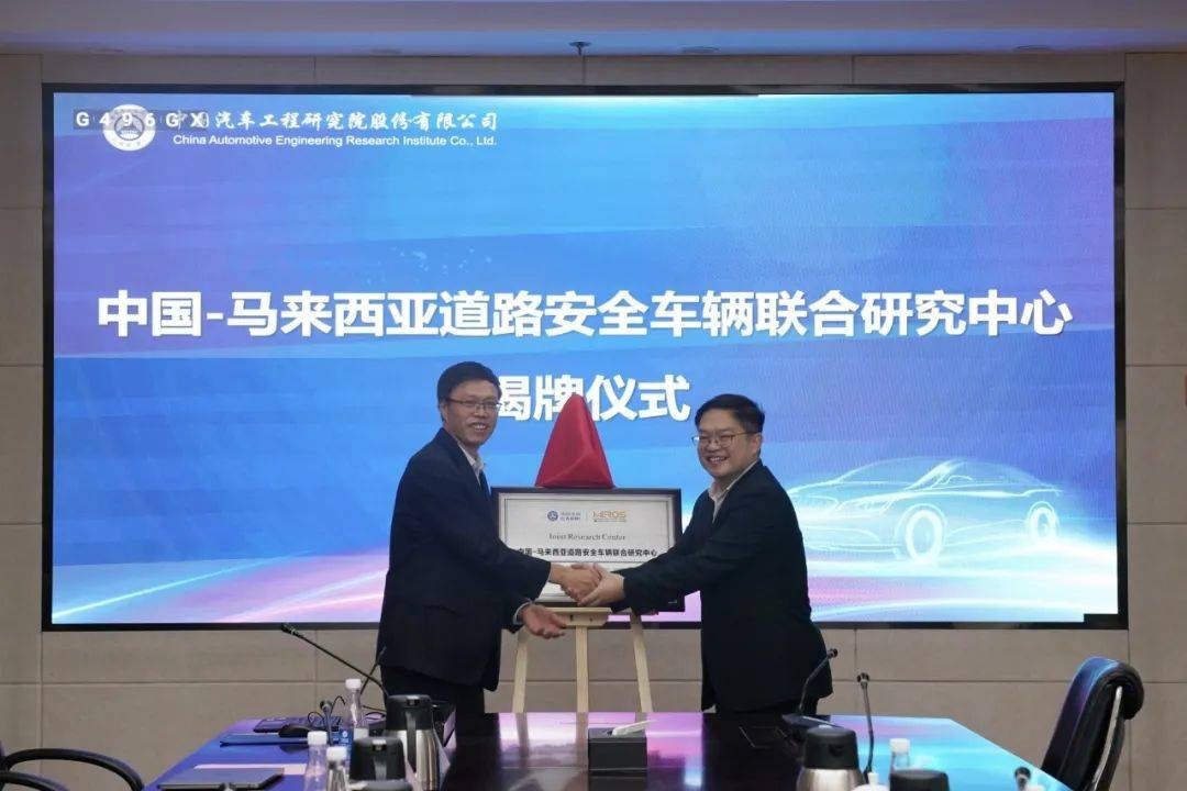 近日,马来西亚道路交通安全研究院董事会主席Professor Dr. Wong Shaw Voon一行到访中国汽研。会后,进行了“中国-马来西亚道路安全车辆联合研究中心”揭牌仪式。联合研究中心的成立标志着双方将不断扩大并深化两国汽车标准法规领域交流合作,共同推动两国安全技术创新、标准体系革新、绿色环保发展。