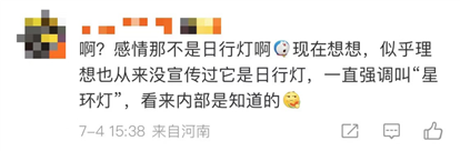 “敢情那不是日行灯啊?现在想想,似乎理想也从来没有宣传过它是日行灯,一直强调叫‘星环灯’,看来内部是知道的。”