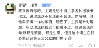 而反观另一方的声音,重心放在了说“慢点评测”是个“双标怪”,只拿标准卡理想,却不针对其他车企品牌。