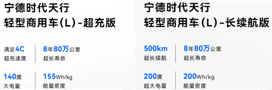相比于搞长刀还是短刀,宁王更看重的推品牌。7月4日,宁德时代正式推出商用动力电池品牌:宁德时代天行。此外,宁德时代还发布了宁德时代天行轻型商用车(L)-超充版、宁德时代天行轻型商用车(L)-长续航版两款产品。