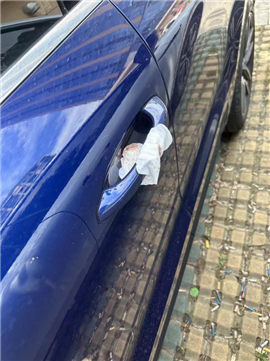 在经过一番周密的计划后,这名女实干家(狠人PRO MAX版),毅然决然的将自己带血的卫生巾,以一种“量子纠缠”的方式,贴在了这辆油车的前门把手上。