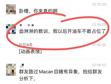 有位油车车主群友表示已老实,求放过:“血淋淋的教训,我反正以后开油车不敢占位了。”