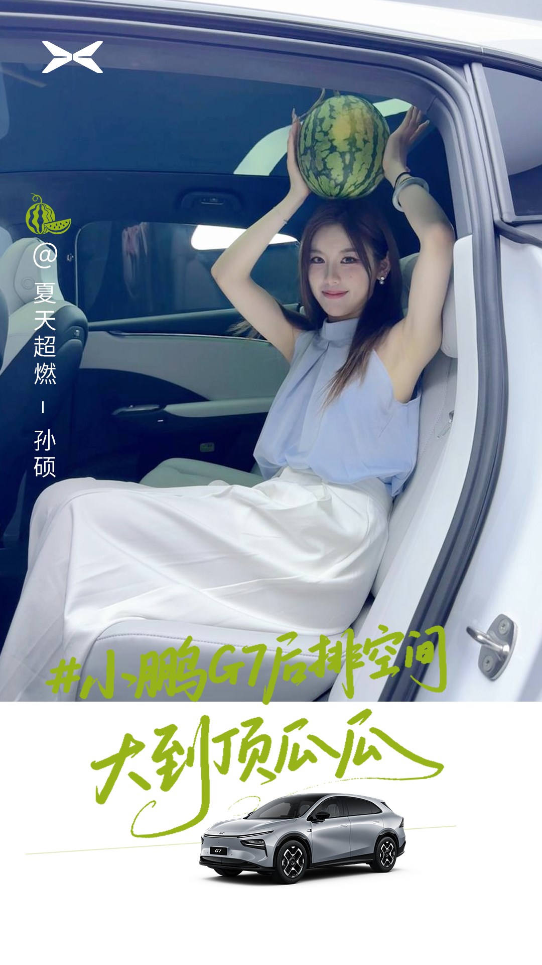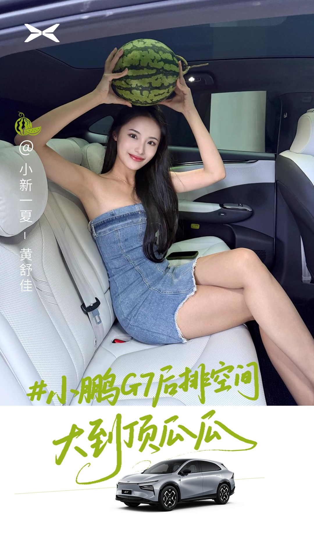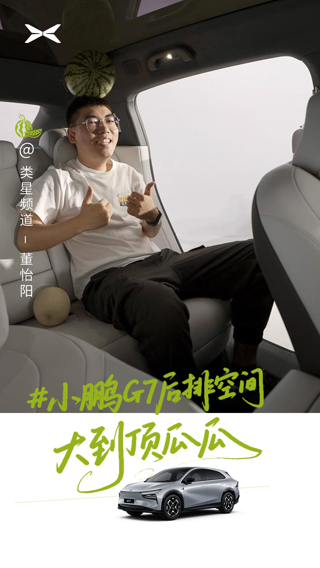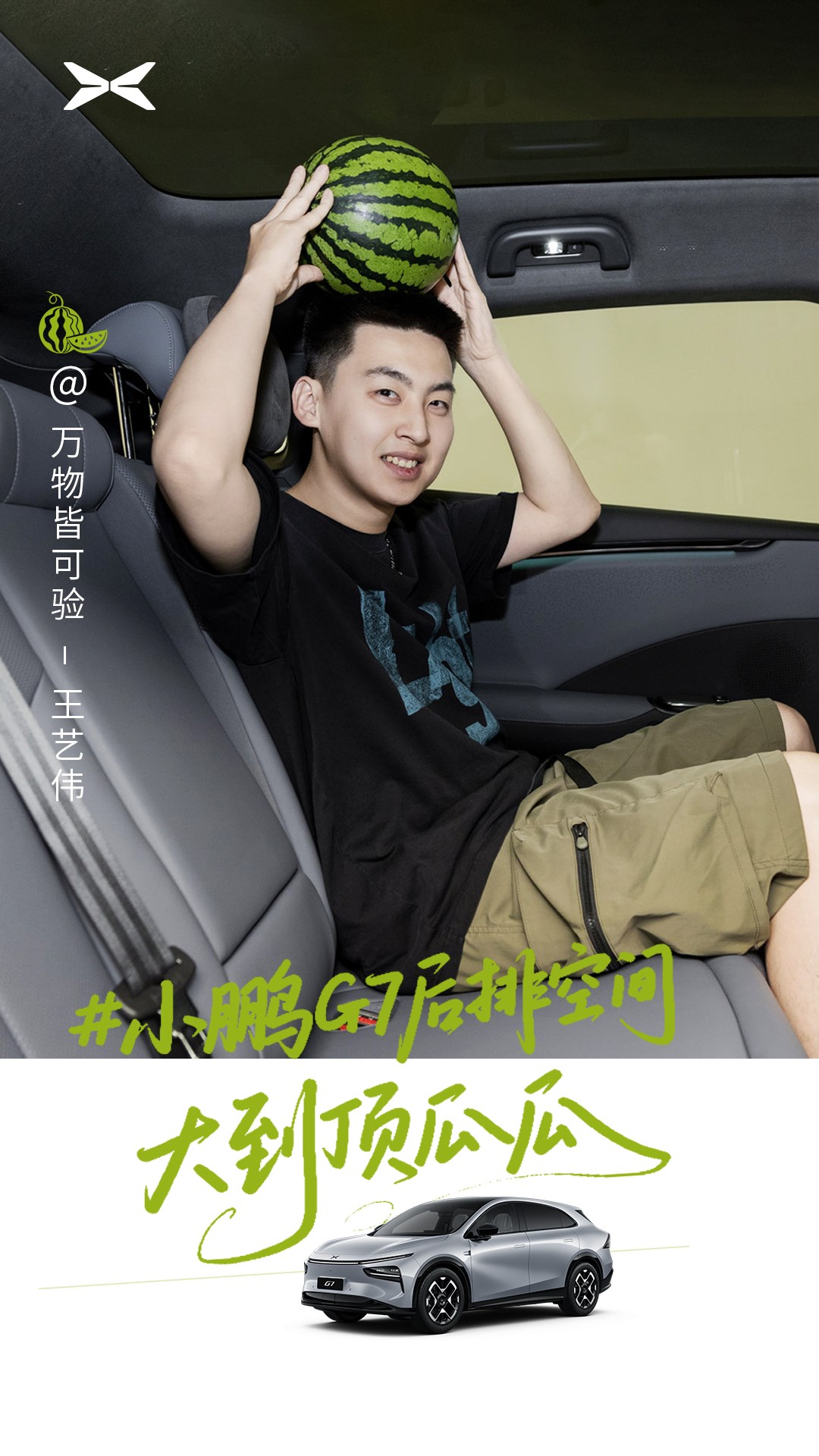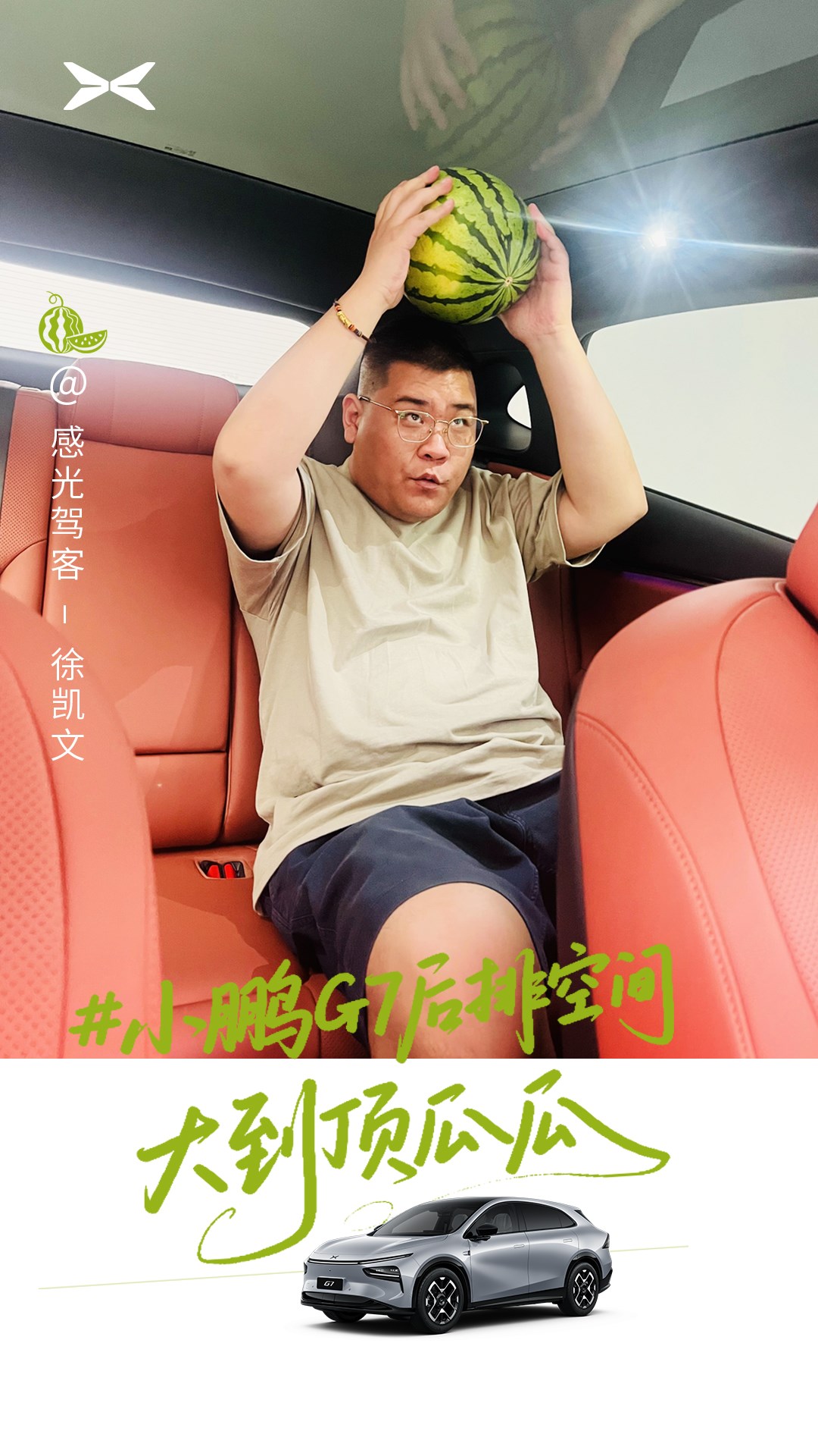 小鹏G7头部空间居然大到能顶西瓜,小鹏的开发团队真的把空间利用到极致,把电池做薄释放车内纵向空间。